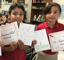 5. The SunriseKid Publishing service delivers each student's hard copy publication to each classroom. We take photos of students receiving their books and even present special awards for best illustrated book, plot twist, book cover and more.
